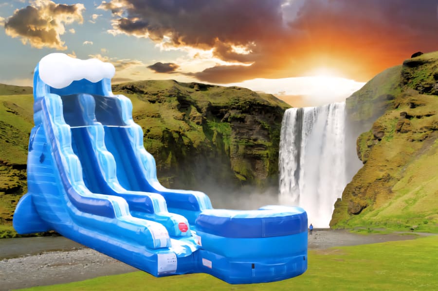 Get ready to dive into nonstop fun with the Blue Wave! 🌊 This striking 18ft inflatable slide delivers thrills for kids and adults. Use it wet for splashy excitement or dry for high-speed slides. Loud laughs. Big smiles. Perfect for parties, festivals, and backyard celebrations.